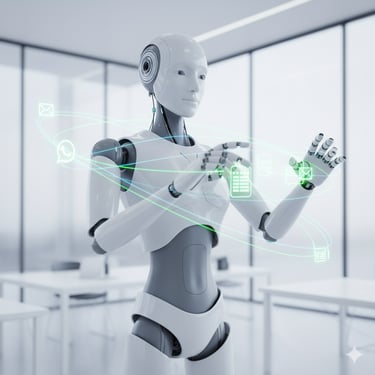 Ele não fica preso a um chat, mas interage com sistemas externos e executa ações no "mundo real" do seu negócio.